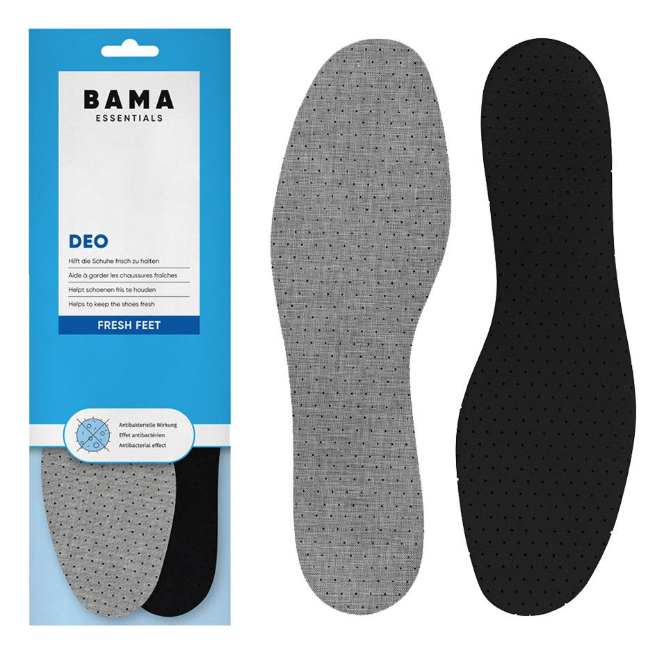 Влошките Bama Deo се погодни за сите видови обувки. Изработени се од латекс пена, што овозможува поголема удобност и мекост при одење и имаат антибактериска активна супстанца што спречува формирање на бактерии и ги неутрализира непријатните мириси. Влошките имаат перфорации за добра циркулација на воздухот и може да се исечат на посакуваната големина.