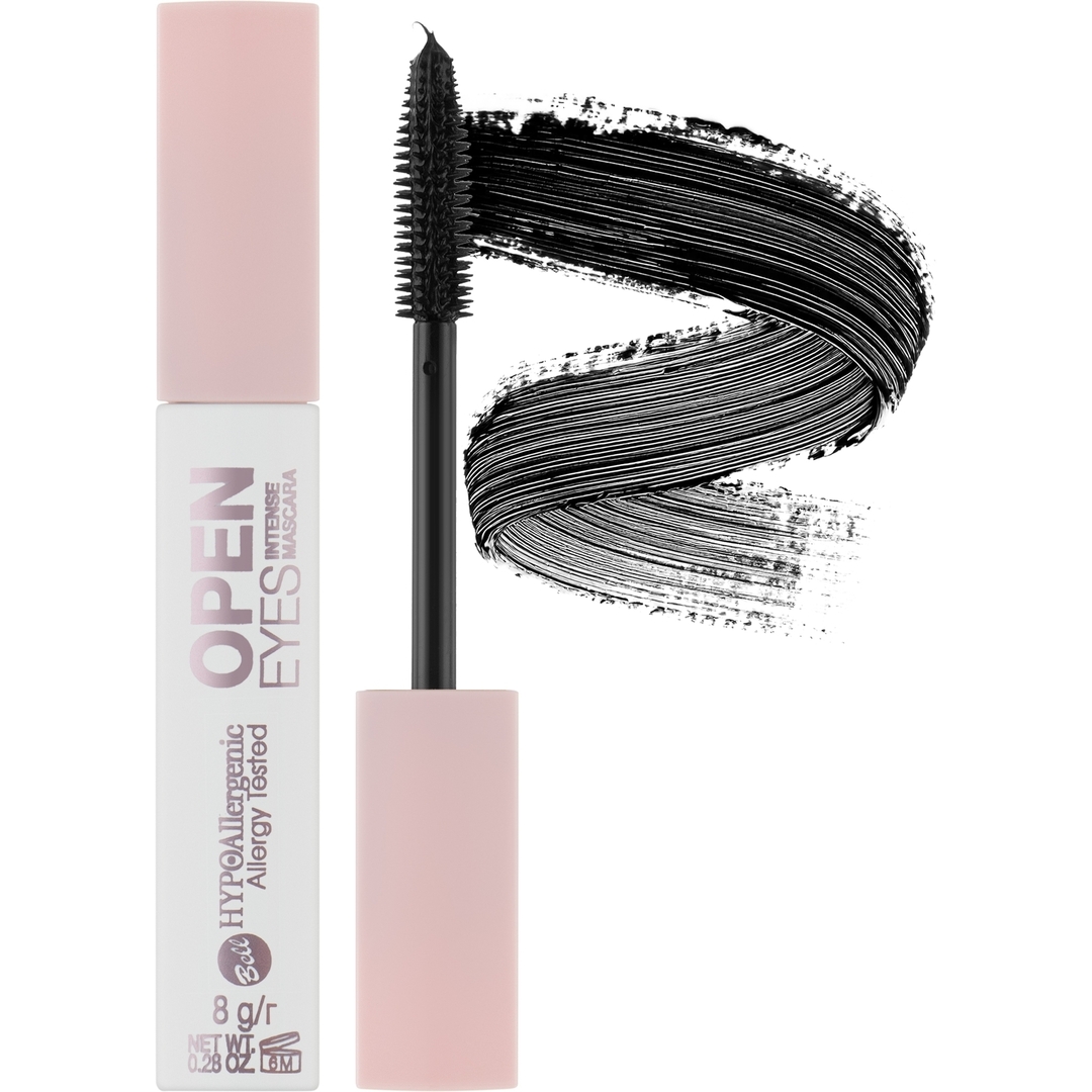Маскарата OPEN интензивно ги издолжува и згуснува трепките без да ги згрутчува. Иновативната силиконска четка ги подигнува и одвојува влакната од коренот. На овој начин, ги отвора очите и дава сензуалност на изгледот. Долготрајната кремаста текстура ја обвиткува секоја трепка со богата црна боја. Формулата е збогатена со маслиново масло, кое ги хидрира, негува и зајакнува трепките.