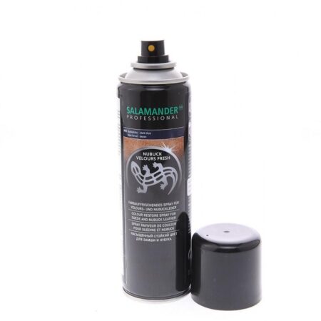 Висококвалитетна боја за сите видови велур и нубук (груб велур). Ја освежува бојата и ја храни кожата. Погоден за сите видови кожа од велур и нубук (груб велур), може да се користи и на текстил. Спрејот се држи вертикално, се прска рамномерно од растојание од околу 20 см, на исчистената и сува површина. Пред користење задолжително заштитете ги ѓонот и др. делови од чевелот кои се во друга боја од спрејот, за да не дојде до обојување во друга боја. Спрејот користете го периодично.